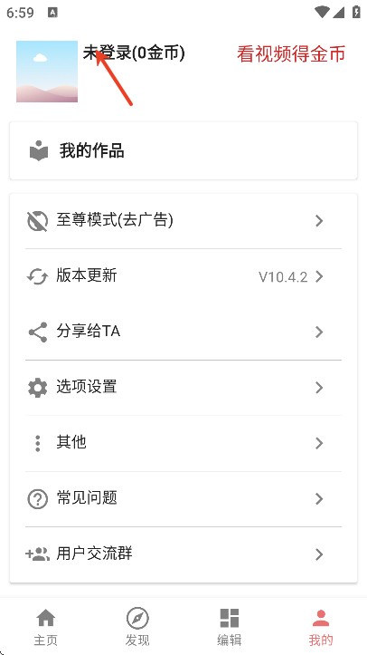 2. 点击下方的“我的”,接着点击箭头所指之处。