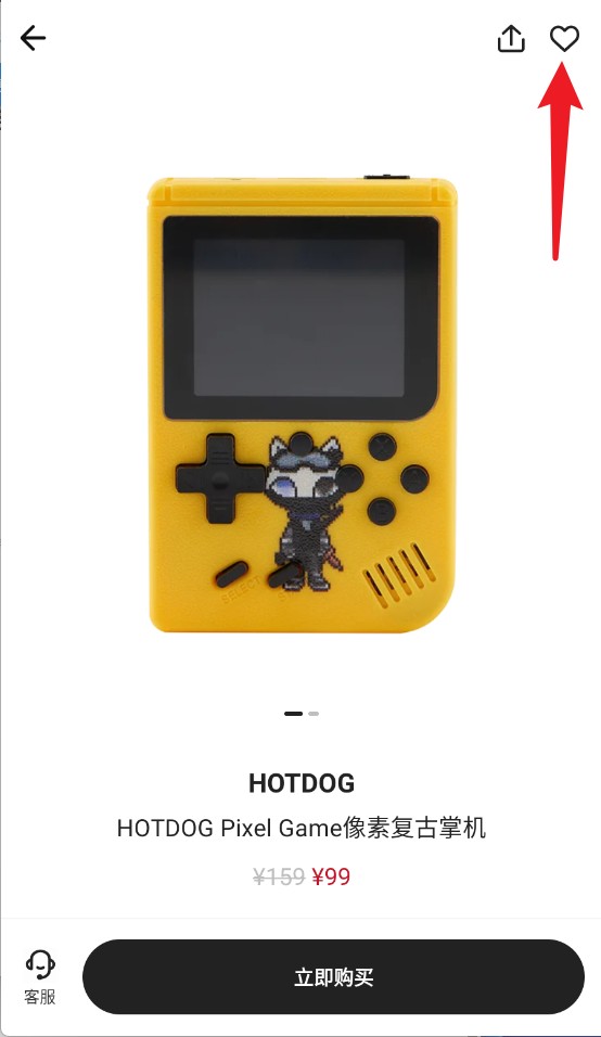3、点击商品右上角爱心图标可收藏商品以便后续查看。