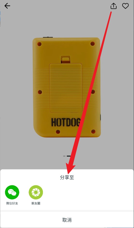 4、点击右上角的分享按钮,您可以将商品分享至微信或朋友圈。