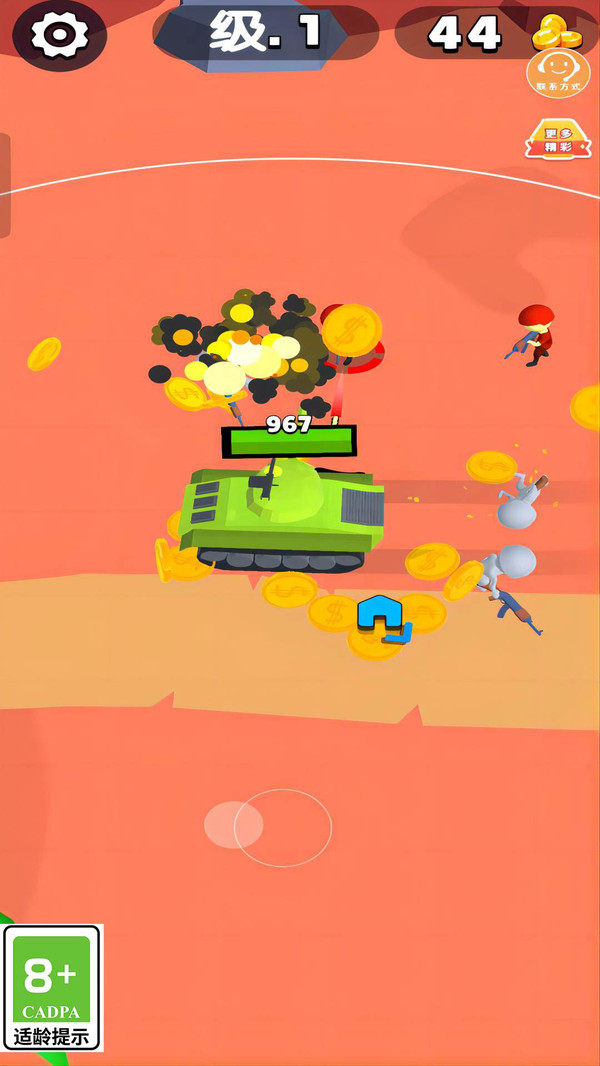 2. 多元丰富的武器体系:玩家可挑选并升级各类武器,像机关枪、火箭筒等。