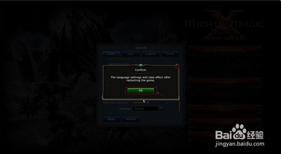 3、选择好后会弹出重启游戏生效的提示框,点击【ok】,如图所示:
