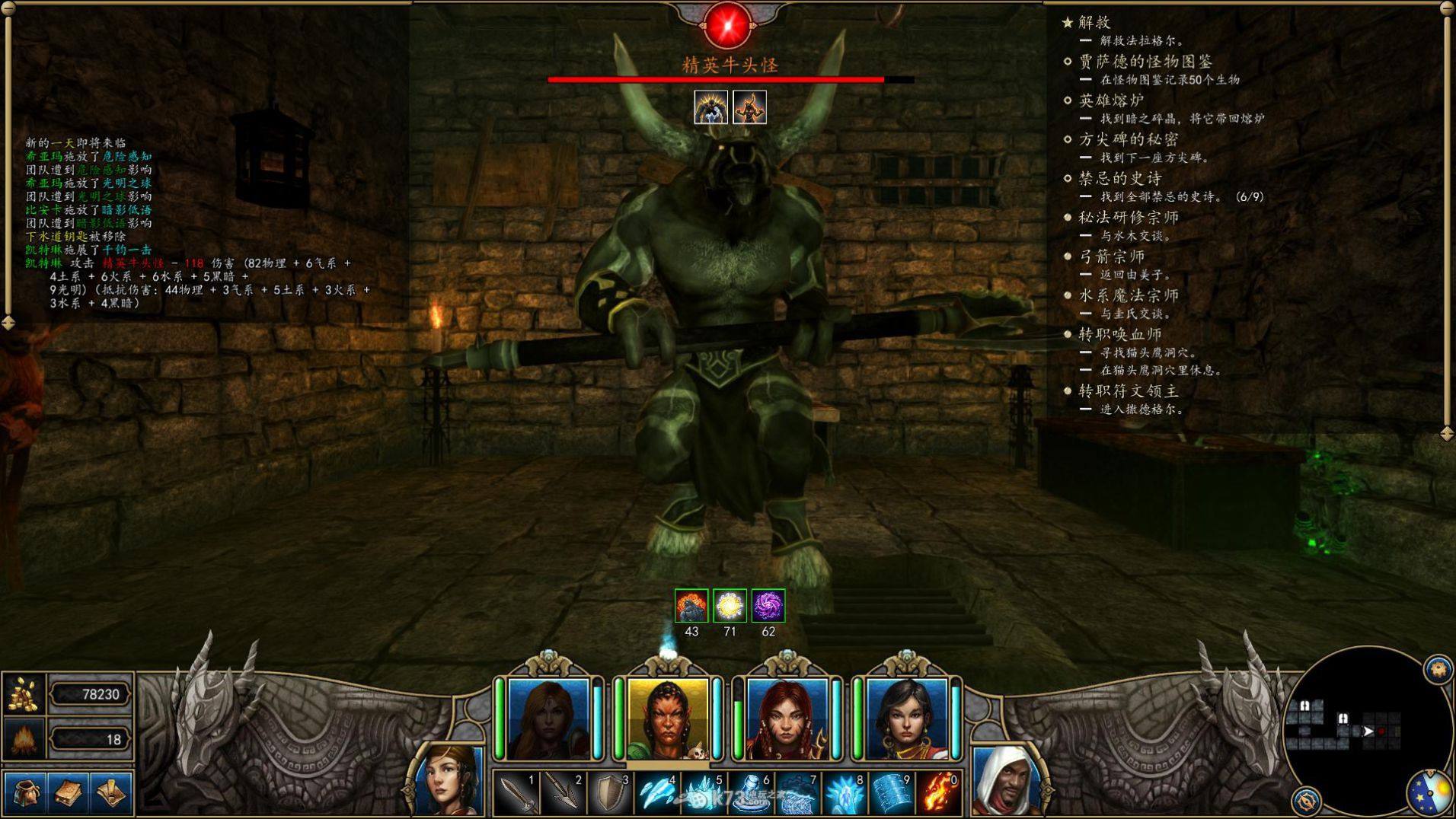 进入游戏选默认队伍进去开搞,目前只开放四种族四职业,以后每个种族会有多职业,还是和前作类似。好了进城后逛逛找找箱子桶子,城市里接接任务,第一个任务去城中水井下的一个箱子里拿东西。下面都是些蜘蛛怪,角色一旦中毒就用绿色的解毒药吧,掉落还是蛮多的用不完。里面有个蜘蛛BOSS,两个战士轮流用技能吸仇恨,他俩也就只有这个技能,法师用光明系的那个护体技能吸收伤害。任务做好买好药,装备补补齐,准备出城,下个任务是去灯塔。出城后可看到一个很高的建筑,门口有几个珊瑚祭司和剑士守着(MMX都是英雄无敌6的生物),祭司攻击不高,好对付。剑士每三回合会用个技能伤害蛮高的,所以一次不要引到三个以上的怪物。清完门口怪进灯塔,多休息,也就是R键,因为没有治疗技能,我看了下治疗技能最低光明系到专家。红药用完就要靠R了!休息的资材是要回城到旅馆补充的。 差不多3级多了,来到顶层BOSS是个血厚的瀛洲剑圣,建议级高点再来打,现在会有难度,怎么杀就不说了,自己体会! 由于BUG比较严重经常会导致回合不结束而卡住 所以我也只玩了一点点,后面的大家自己 体会才会有乐趣。