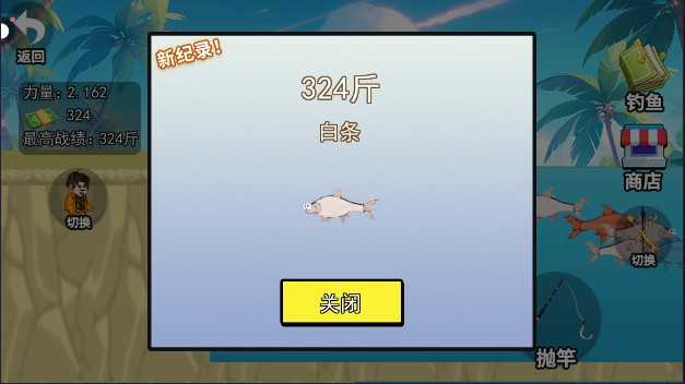 3、每次钓到的鱼都有具体重量,并且能知晓鱼的品种名称。