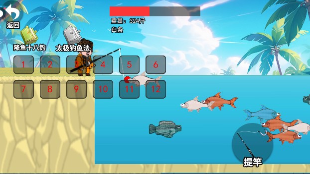 2、选取降鱼十八钓与太极钓鱼法这两种方法来开展钓鱼活动。