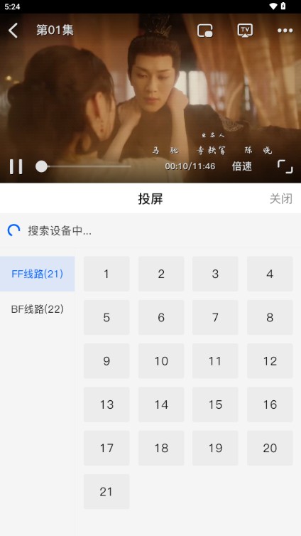3. 当您进入播放界面后,只需点击右上角的TV按钮,系统便会即刻开始搜索可供投屏的设备。