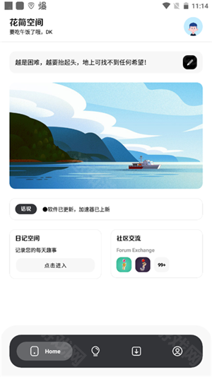 1. 于本站完成安装后,开启软件,点击“home”,接着点击“日记空间”。在此处,用户能够随时记录自身心情,或是即将着手去做的事,记录自己的生活点滴。