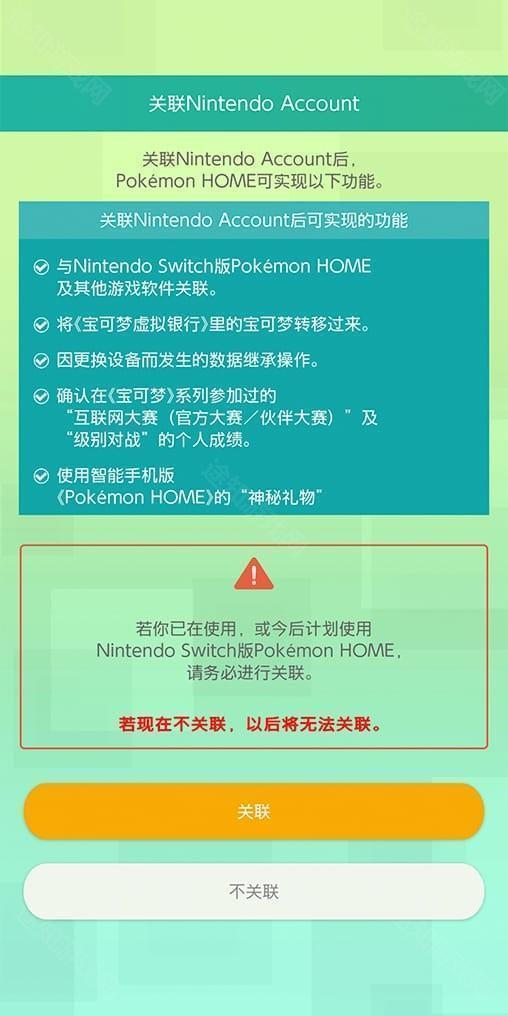 ※若未进行关联,便无法与Nintendo Switch版《Pokémon HOME》共享使用情况,所以请一定在初次启动的初始设置画面完成关联。