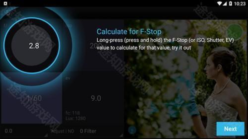4、长按(即按住不松手)F-Stop(或者ISO、Shutter、EV)值,以便计算该数值,之后进行试用。