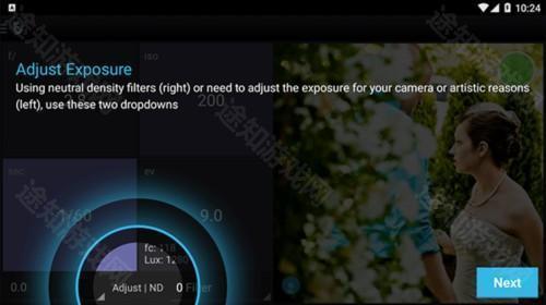 使用LightMeter测光表,您能够对过滤器参数进行设置,从而保证始终获得准确的曝光。当您把相机设置为测光表显示的值时,就能拍摄出照明效果完美的照片。