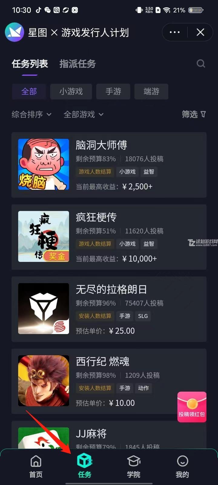 4、于任务列表中,挑选“小游戏”,接着选取你心仪的游戏。