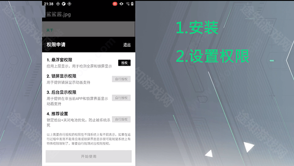 2. 进行权限设置,赋予悬浮窗权限、锁屏显示权限以及后台显示权限。