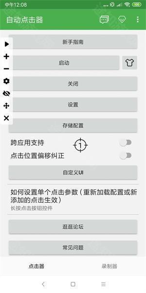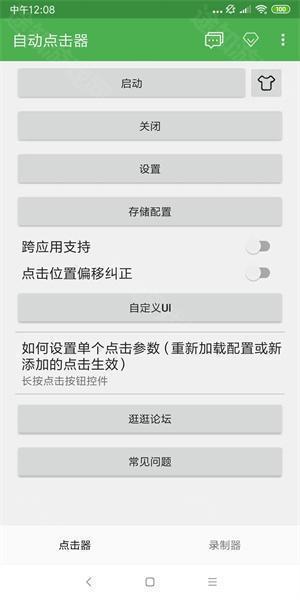 3、轻点灰色按钮,启动“自动点击器”,随后返回应用。