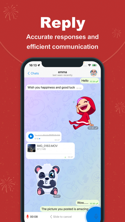 2. 多样化的聊天功能:支持文字、图片、视频、音频等多种消息类型,满足用户多样化的沟通需求。