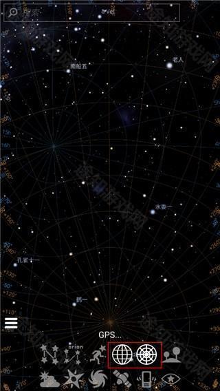 支持在天空中呈现不同的网格或线条。其默认设定为方位角,长按能够选择其他的选项。
