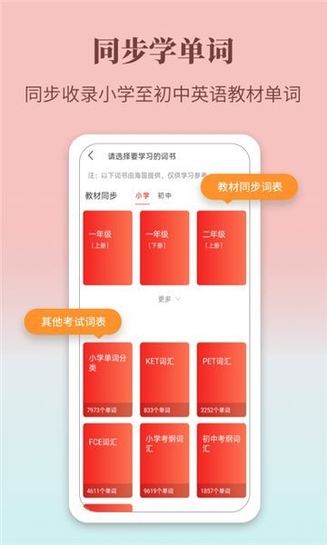 在App内增添额外收入,即KET、PET、FCE考试词汇,并据此形成多个词表。