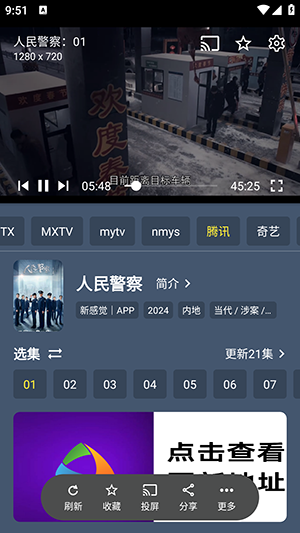 5、若在播放页面出现卡顿情况,可切换路线。此外,点击页面下方的投屏功能,就能实现投屏。