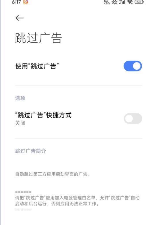 5、于设置页面里找寻【跳过广告】选项,随后点击进入。