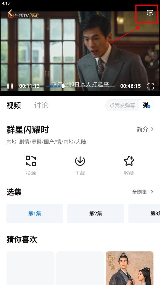 1. 首先确保电视/盒子与手机处于同一WiFi网络环境下,然后在播放页面点击“TV”。