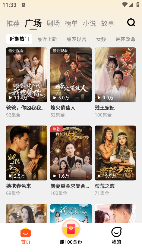 1. 开启软件,进入广场后,便能看到各式各样的短剧。