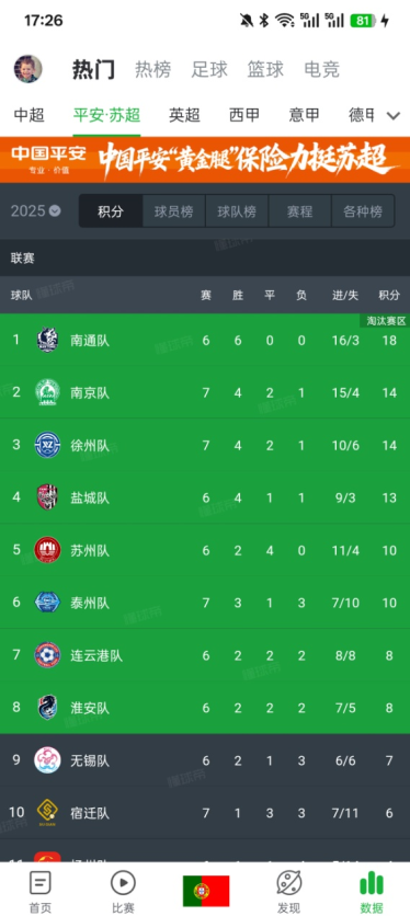 2. 接着点击数据页面,就能查看积分榜的相关内容。