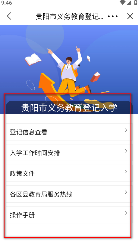 3. 如图所示,便会呈现贵阳市义务教育登记入学的具体项目。逐个点击进入查看,随后依照软件提示进行操作就行。