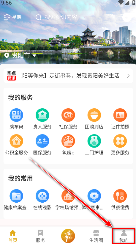 1. 首先请打开爽贵阳,接着点击右下角“我的” 。