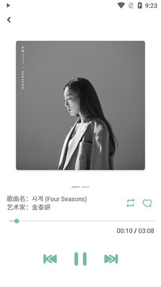 6、此外,音乐播放界面极为简洁,不仅能够收藏音乐,还能对播放方式进行设置。