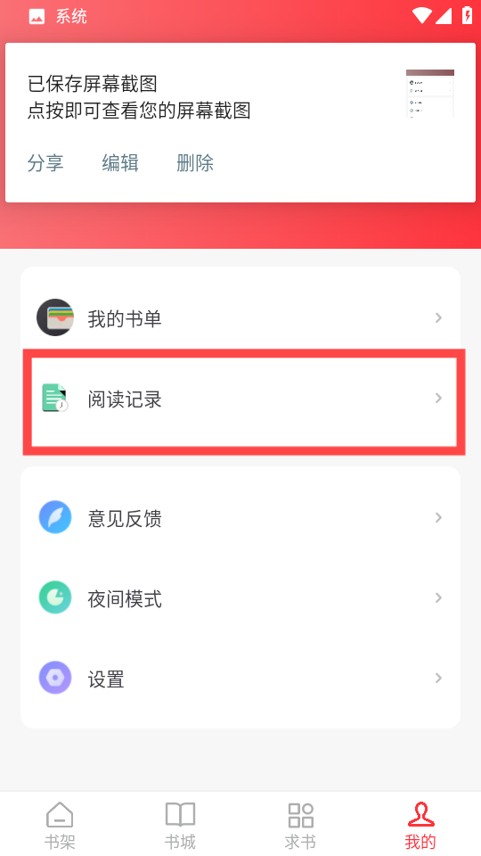 2、接着找到“阅读记录”的入口,按照图中所示进行操作。