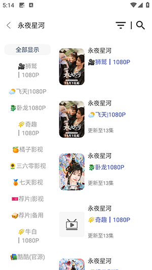4、点击相应影片,等待加载播放。若播放失败或无法播放,可切换影视源。
