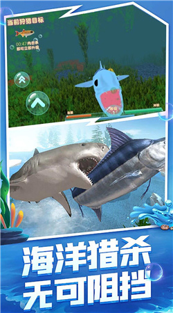 2、玩家将化身一条鲨鱼,从幼小鱼苗起步,开启一系列吞噬冒险之旅;