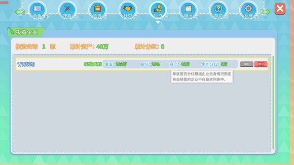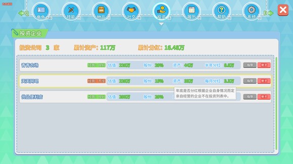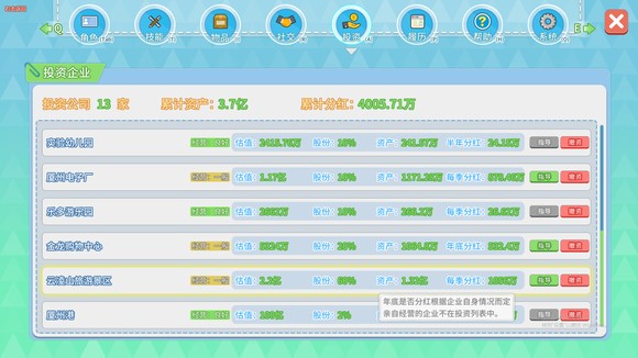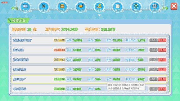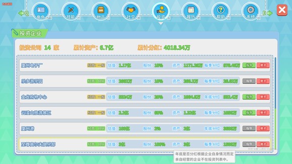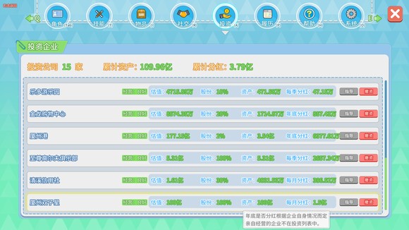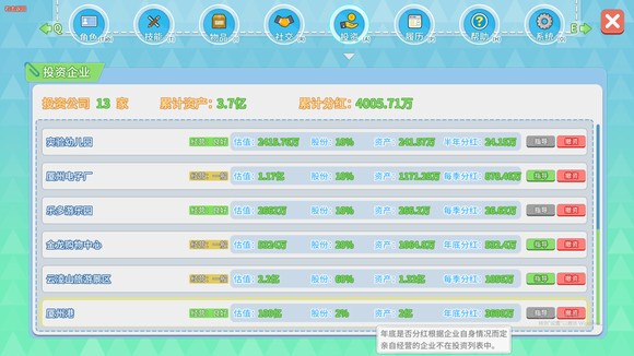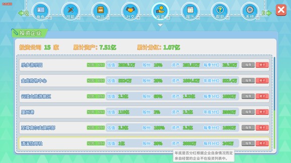 15/农村信用社的差事进度还差1/4,前置任务希望有人能带带。咳咳,说偏了,这个投资项目调研需要4级的金融和市场技能,是高级组里唯一没有挑战难度的投资。把它放在最后考虑,是因为它最高需要3000万的投资金额,但资产收益率接近1:1,每月能稳定带来240万的回报。而且如果中途卖掉它,完全就是杀鸡取卵——最多只能拿回几千万本金,所以非常不建议撤资。