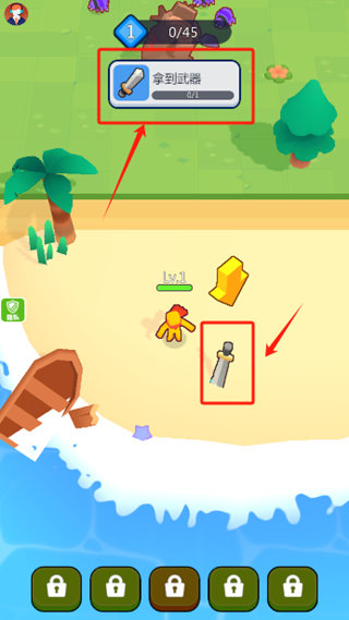 1进入游戏后,第一步是在地图里拾取武器,接着去搜寻更多对手来进行对抗。