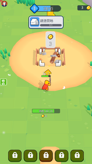 3. 积累到一定数量的金币后,需要着手建造营地,并且还要对自己的营地进行升级。