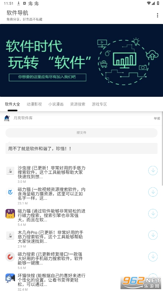 资源搜索方面,用户能够借助关键词搜索的功能,迅速定位到自己需要的软件或者游戏资源。