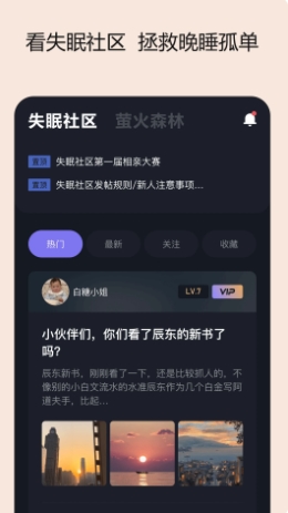 可以搭建一个专属的失眠社群,让受失眠困扰的用户能在此相聚,自由地分享和探讨各类与失眠相关的心得与感受,从而切实缓解他们在深夜难眠时的孤独感。