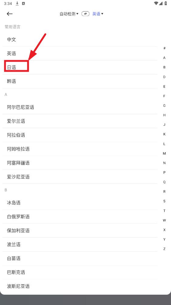 选择要翻译成的语言