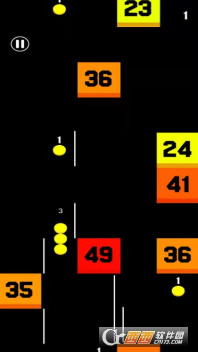 游戏过程中要留意,你需要撞击数字比你弹珠小的方块,一旦操作错误,游戏就会失败并重新开始。