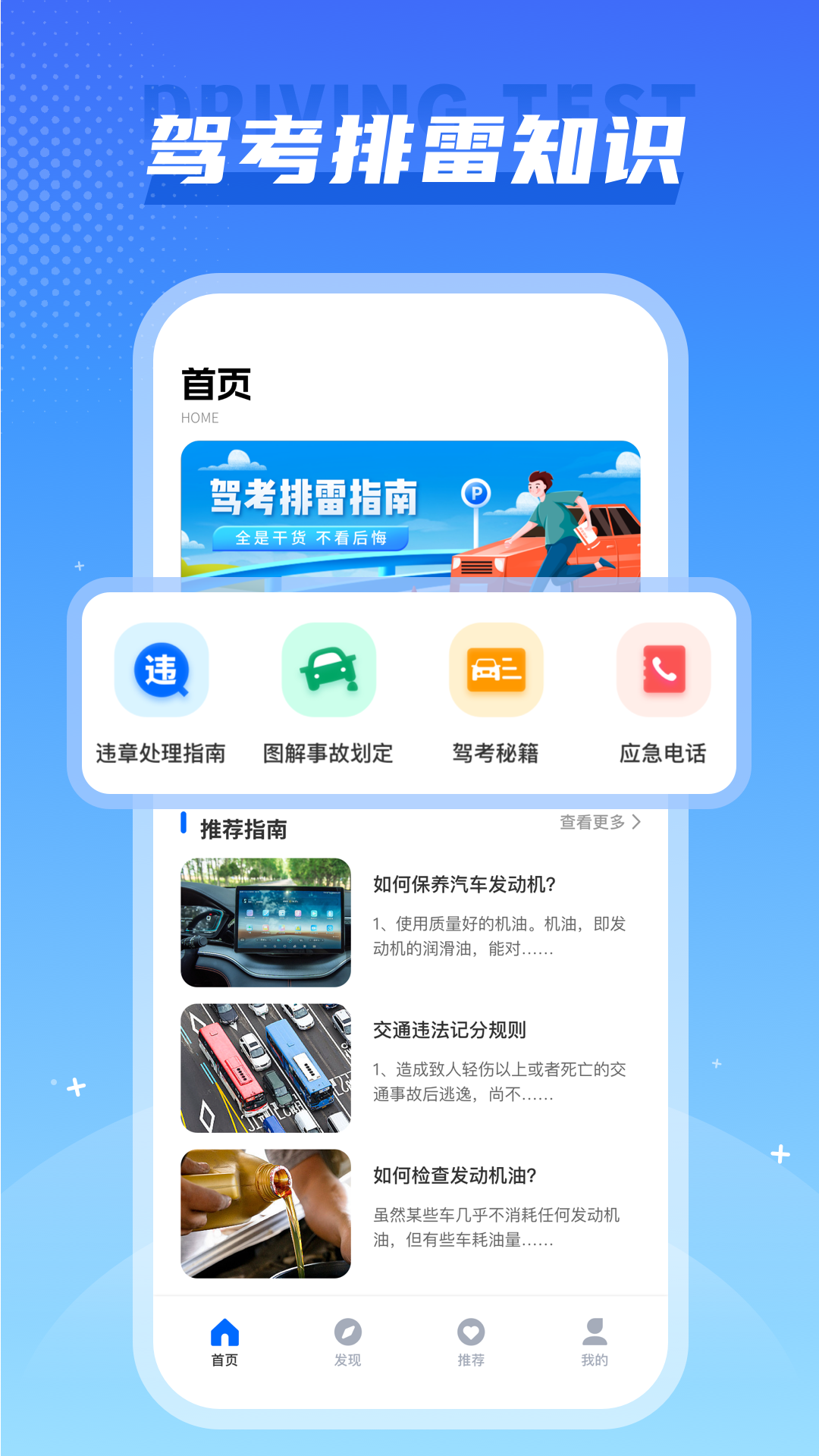 这款软件功能十分全面,用户通过它不仅能轻松进行违章查询——只需输入车牌号就能快速获取车辆的违章记录,便于及时处理相关事宜,有效避免因疏忽引发的罚款或其他不必要的困扰;其中的驾考知识板块还提供了详尽的学习资料与模拟考试服务,助力用户在考前做好充分准备;养车小贴士能为用户带来专业的车辆养护建议,助力延长车辆使用寿命;购车指南功能则涵盖了市场热门车型的详细信息与对比评测,帮助用户在购车时做出更理性的决策;而汽车行业新闻的实时推送,也能让用户第一时间了解行业动态,不断丰富自身的汽车知识储备。