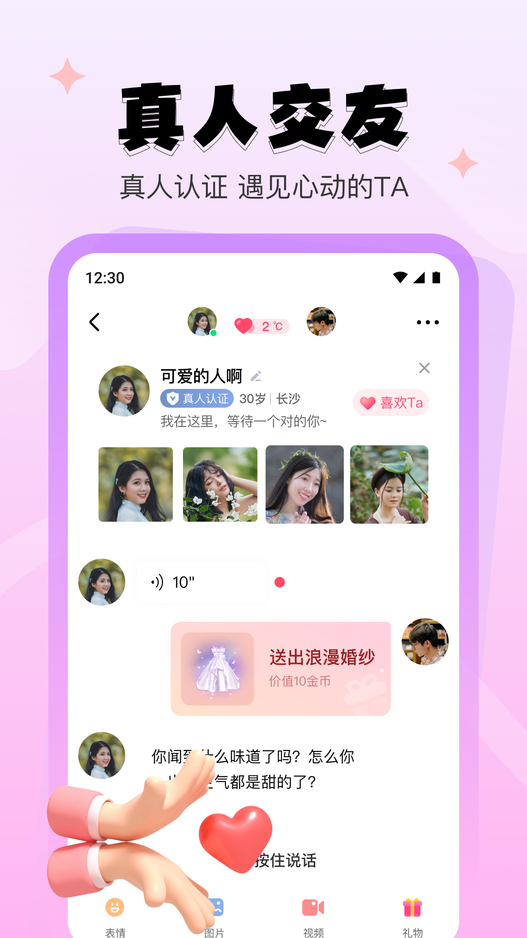《心系甜友》软件了多种丰富有趣的互动玩法,让陌生的你们不再只是简单尬聊。多样的互动游戏能拉近彼此距离,帮助你们发现对方更多优点与幽默之处,从而敞开心扉、彻夜长谈,轻松化解没话题的尴尬。软件采用实名认证机制,安全可靠有保障。进入软件后,你可以根据喜好创建一个代表自己形象的虚拟小人,它将作为你的“替身”;填写真实信息后,系统会为你匹配更契合的好友。