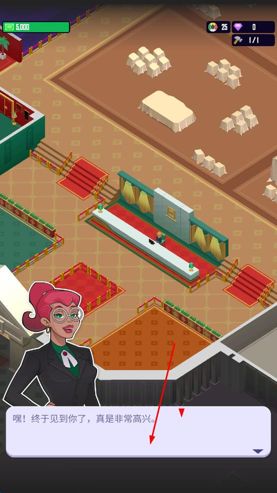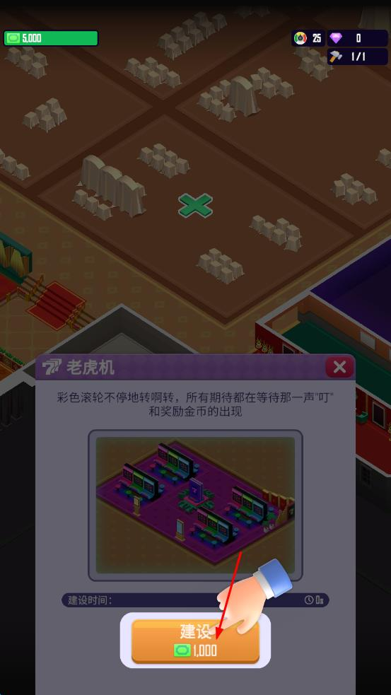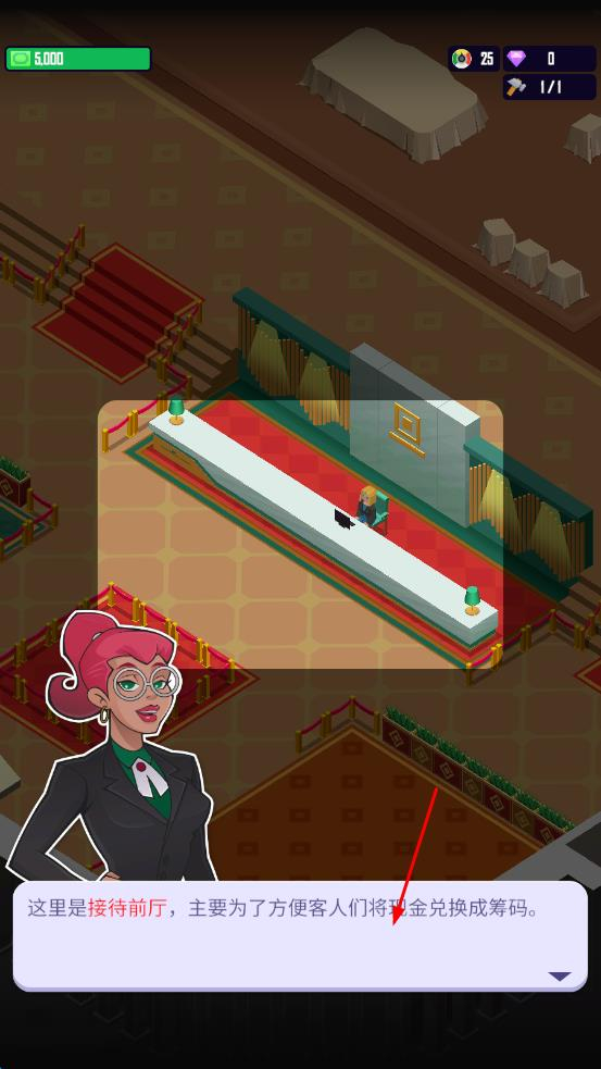 1开启游戏后,先挑选合适的赌场场景,布置基础的博彩设备,像轮盘赌桌和角子机这类,等设定好游戏规则,就可以开始营业,迎接第一批顾客了。