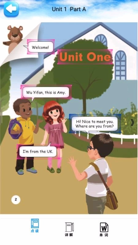 课本点读功能,哪里不会点哪里,跟着名师进行朗读课文;