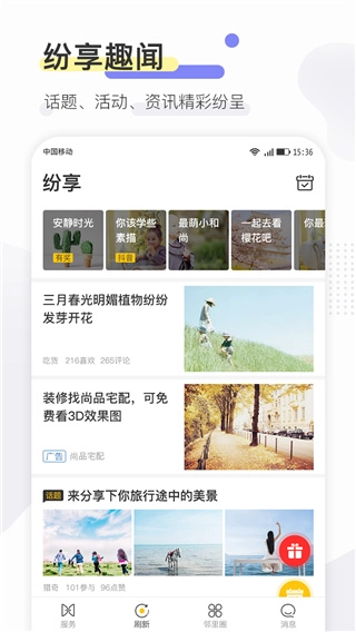 邻里圈:生活里的烦心事儿、日常的小吐槽、邻里间的互帮互助,这是专属于小区住户的“朋友圈”