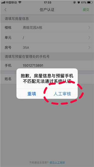 注意事项:若您是已在服务中心登记过业主信息的业主,提交审核时系统将直接通过;若未登记过,则需管理人员进行手动审核。