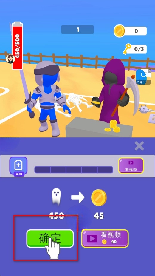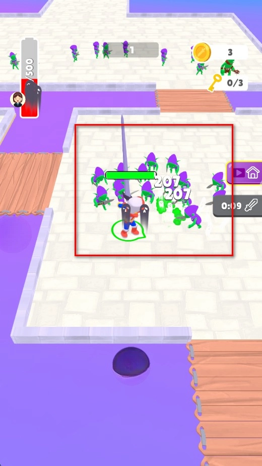 2、在战斗阶段,你需要操控角色在场景里移动,利用攻击键和释放技能来对抗紫色敌人,与此同时要留意躲避敌人的攻击,努力存活下来并推进关卡进度。
