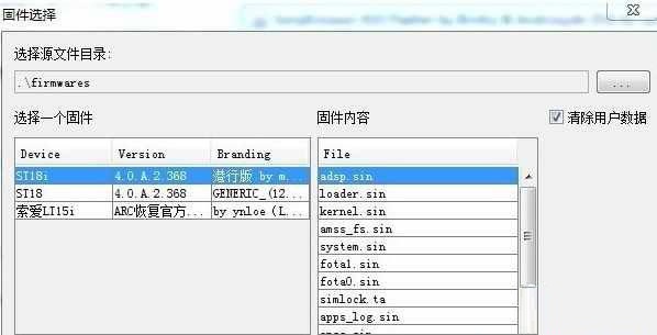 5、在菜单的左侧选择你想要强刷的强刷包,这边我就随便选择一个了。选择完毕后右侧会出现这个强刷包中所有包含的刷机文件。然后点击OK。请等待。出现的界面如下图。