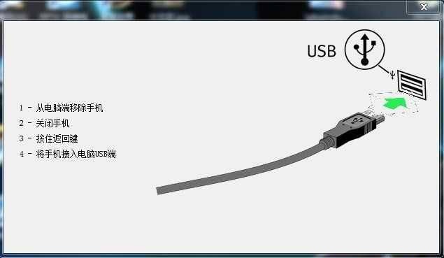 7、此时拿出手机,千万不要开机。按住“音量-”按键不放,再用数据线连接手机和计算机。此时手机指示灯是常亮绿色。如果是第一次使用计算机上会有提示安装驱动。请按照帖子一开始的提示安装正确的驱动。驱动安装错误会找不到设备。请务必仔细安装。