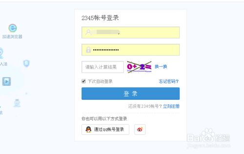 1.打开2345浏览器,点击登录,然后点击“立刻注册”,填写注册资料。注册成功之后登录账号。