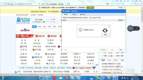3.此时已经显示删除成功了→确定。但是,这个电脑管家处理的只是一个快捷方式而已,并没有处理掉它自己带来的真正隐患,如要处理干净,还要用户自行处理。