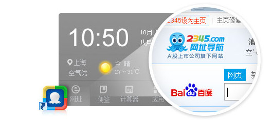 2345网址导航桌面版是一款适用的桌面工具,有了它你就能轻松方便的打开2345网页导航了,有了它你也不用担心主页经常被恶意篡改,或者无法把2345设为主页了,希望大家喜欢。