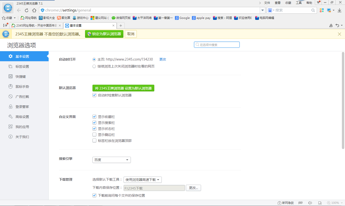 7.用户自行改变主页之后,电脑管家还会假惺惺地设置障碍,不让用户自行设置主页。两种办法处理之,先卸载电脑管家,不让它作梗。另一种方法是使用它的一键定自定义的主页(方法不再赘述,以避免垃圾软件邀功成真)。